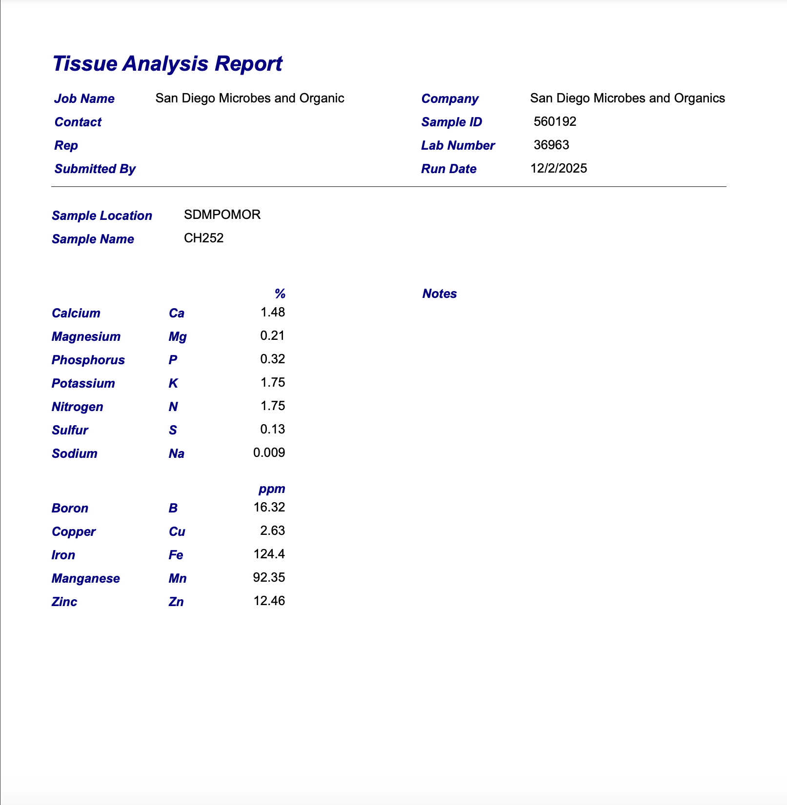 When combined with soil data, tissue testing shows both what’s available and what the plant is actually taking up — closing the loop.