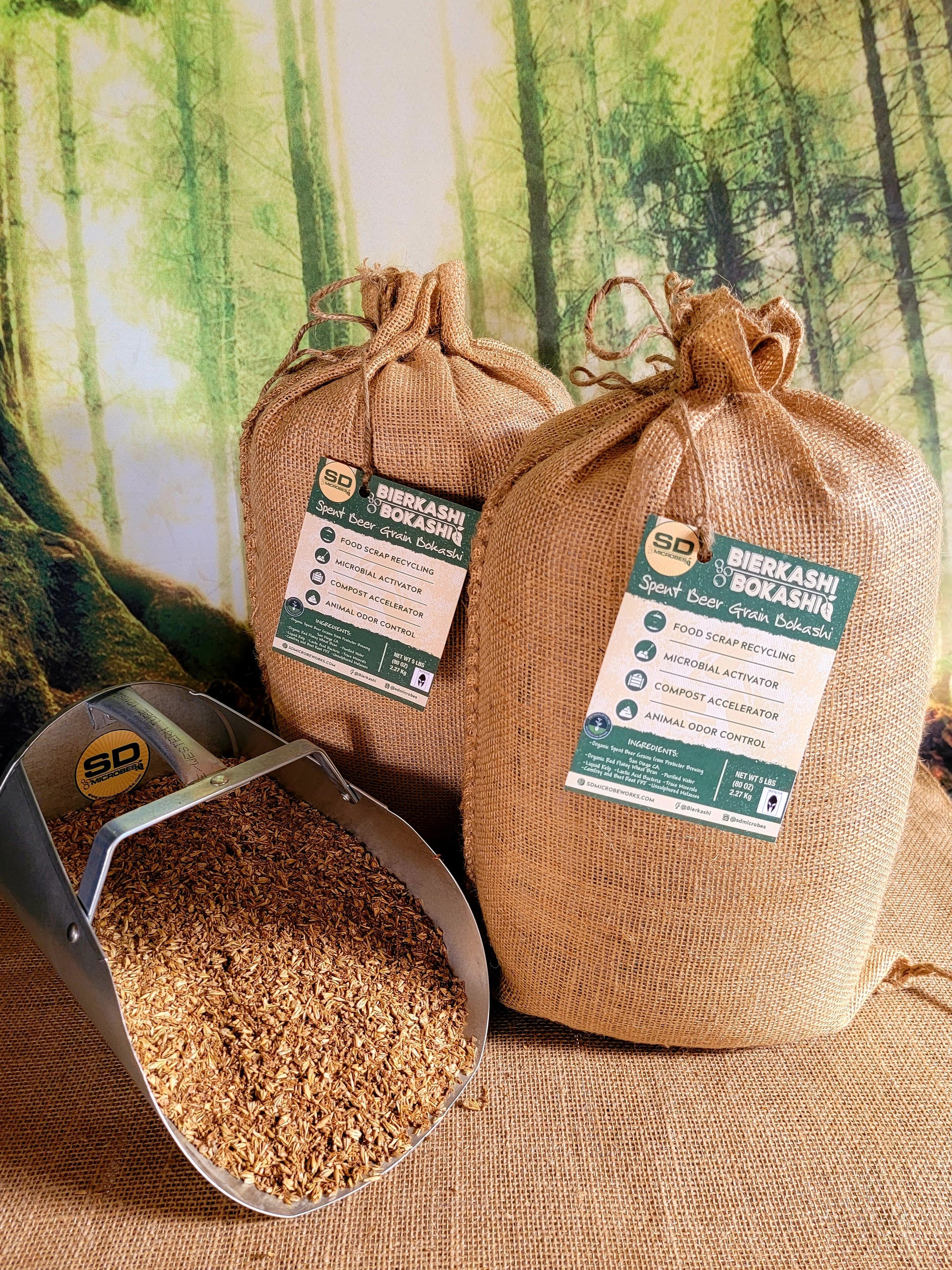 Discover the transformative potential of SD Microbes BierKashi Bokashi, crafted from recycled organic spent brewers grains sourced from San Diego's renowned Protector Brewing Company, the city's first and only organic brewery. This upcycled substrate combines with organic Red Flaky Wheat Bran to cultivate our BrewKashi Microbial Inoculum, featuring LactoBacillus Casei and other natural farming inputs. Each batch undergoes a meticulous three-week fermentation process followed by drying for optimal storage.