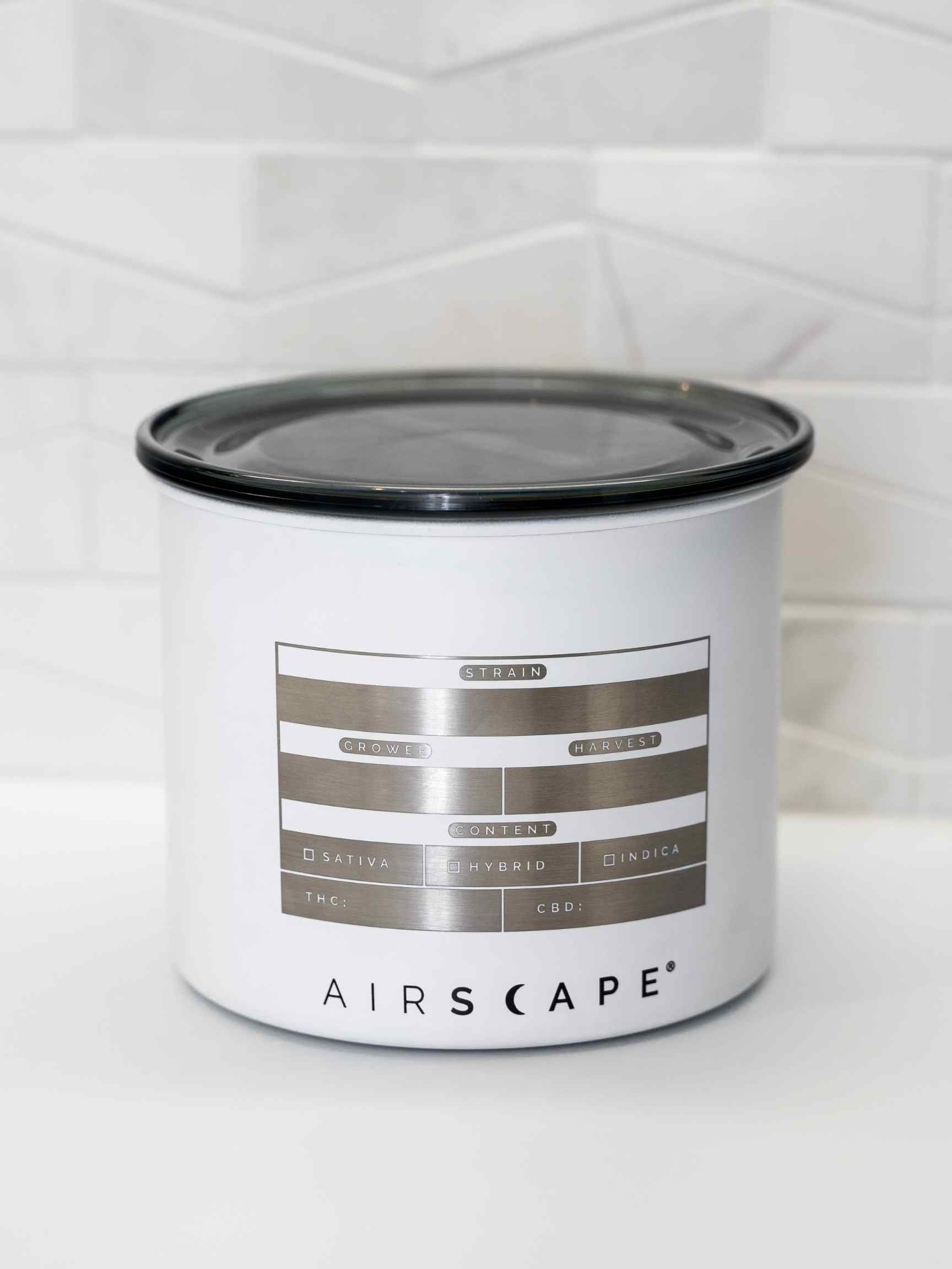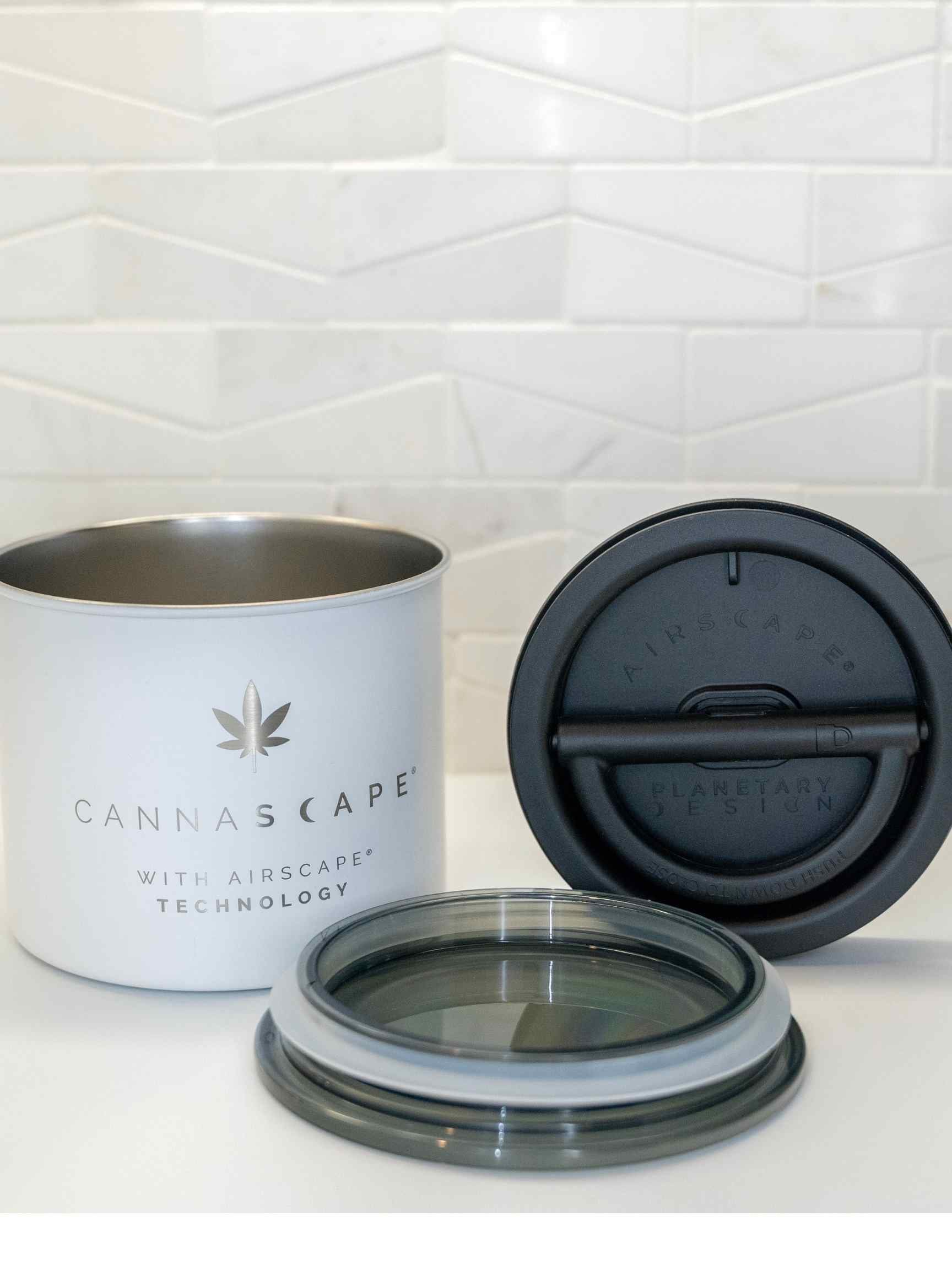 No oxygen. No light. No smell. No gimmicks. Preserve your flower the correct way, in a proper and sleek Cannascape® Matte Black. Our patented Airscape® technology keeps oxygen out and freshness in. As the Airscape® lid is pressed down, the oxygen is forced to exit through a two-way valve. An 18/8 restaurant grade, and BPA free stainless steel body protects all contents from ultraviolet light and a rubber sealed lid keeps aroma locked in. On the back, you’ll find a chart to keep track of your flower’s strain, harvest, and contents. Free Shipping!